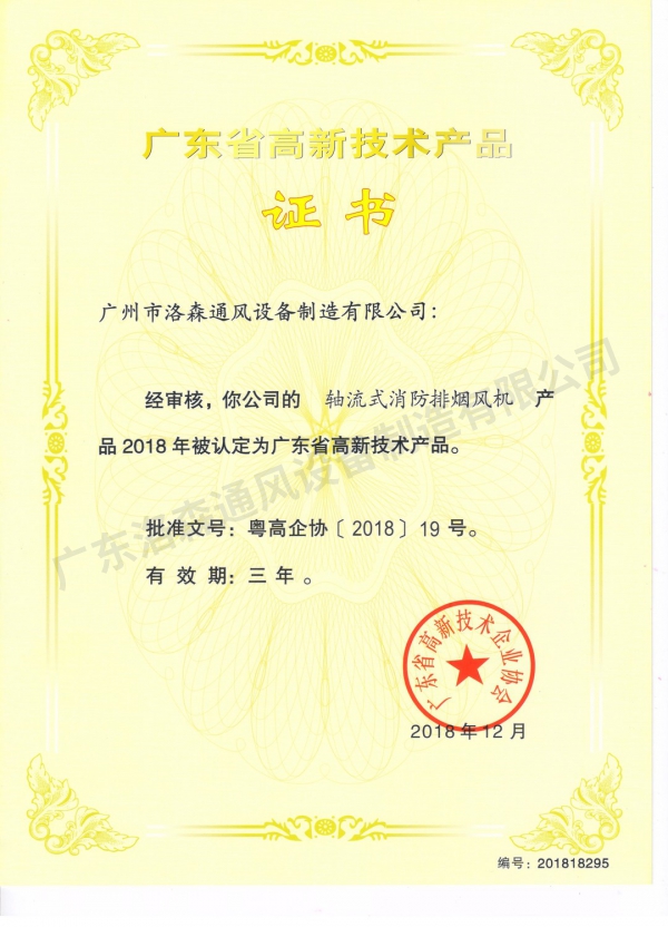 主页 > 荣誉资质 > 产品认证证书 > 高新技术产品证书-轴流式消防排烟风机