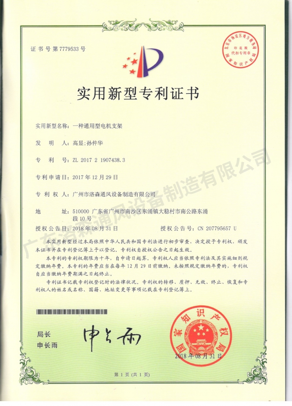 主页 > 荣誉资质 > 专利证书 > 一种通用型电机支架