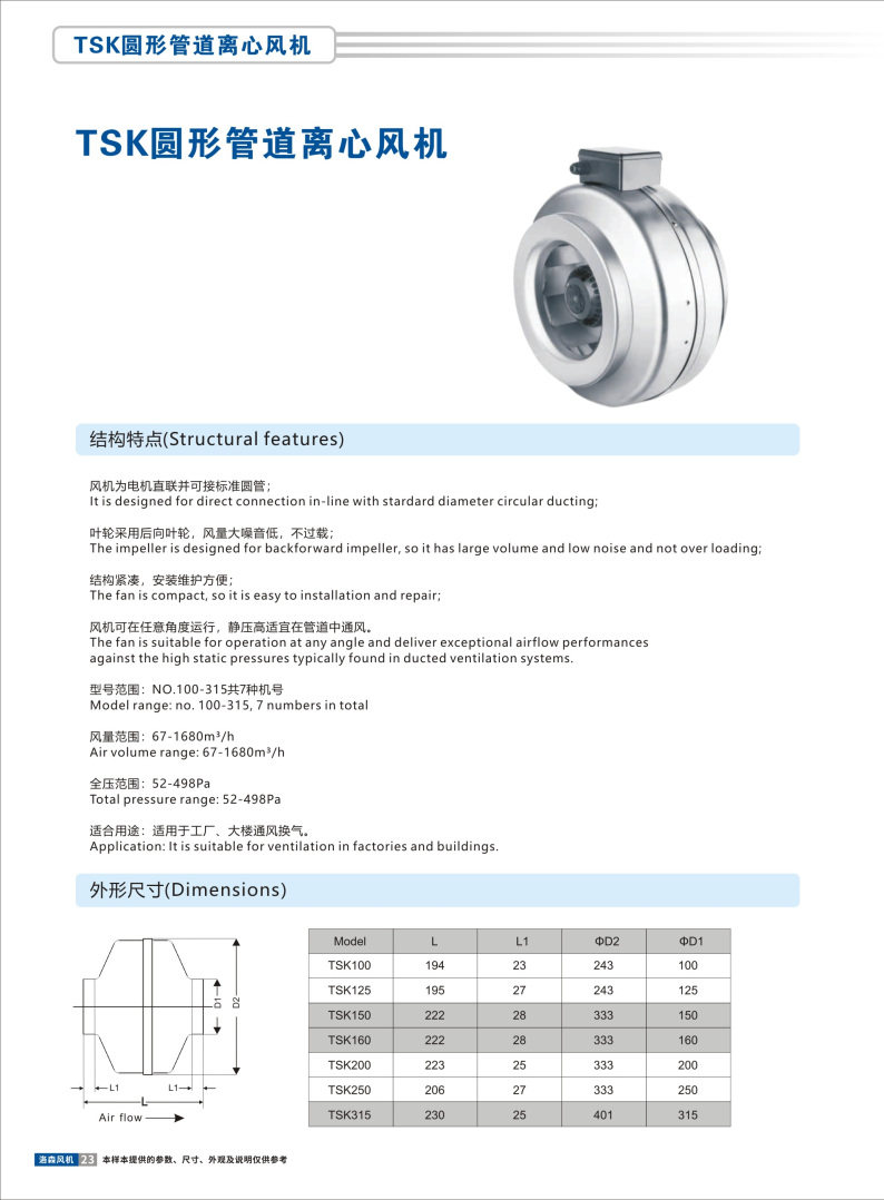 叶轮采用后向叶轮,风量大噪音低,不过载;